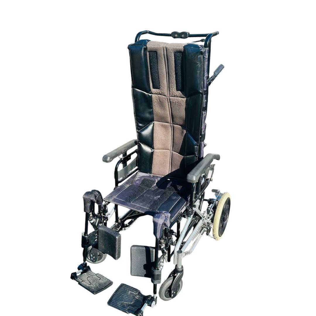 リクライニング機能付きの電動車椅子、クッション付き合成皮革座面。- タイプ: 電動車椅子- 色: 黒/青- 特徴: リクライニング機能- 座面の素材: クッション付き合成皮革ご覧いただきありがとうございます。